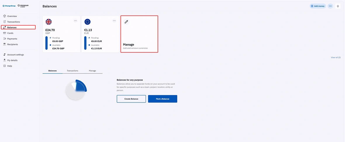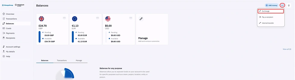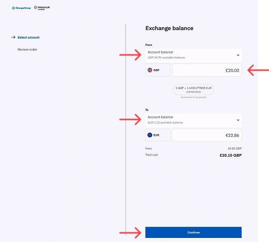 - Sélectionnez le solde à partir duquel vous souhaitez convertir la devise